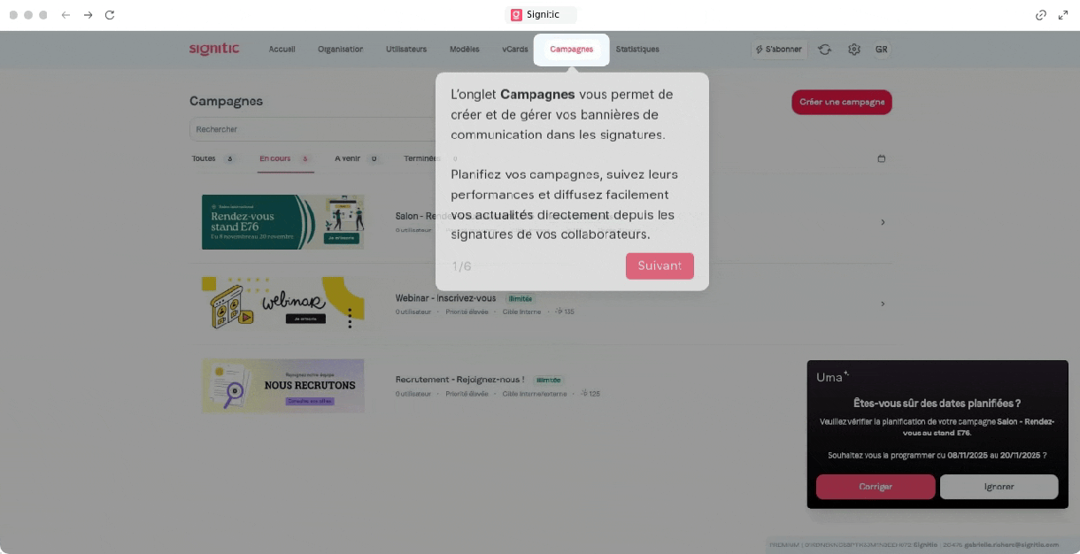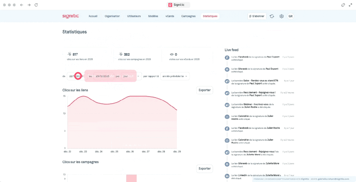 Click tracking tells you which banners generate engagement and which go unnoticed. A/B testing allows you to compare two versions of a visual or message to identify what converts best before deploying everything. And the analytics integration allows you to connect this traffic to your usual tools, to precisely measure what comes from your signatures in your overall reporting.
